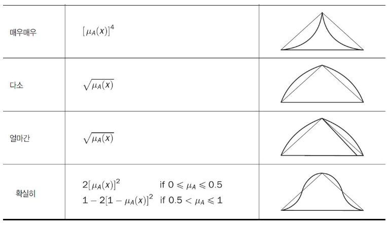 // A, B : 논의 영역을 x, y로 하는 퍼지 집합