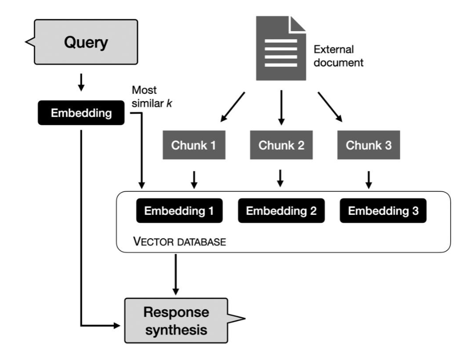 이러한 임베딩 데이터는 VectorDB에 저장되어, 아래와 같은 절차를 통해 RAG(Retrieval-Augmented Generation) 구조로 활용될 수 있다.