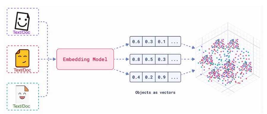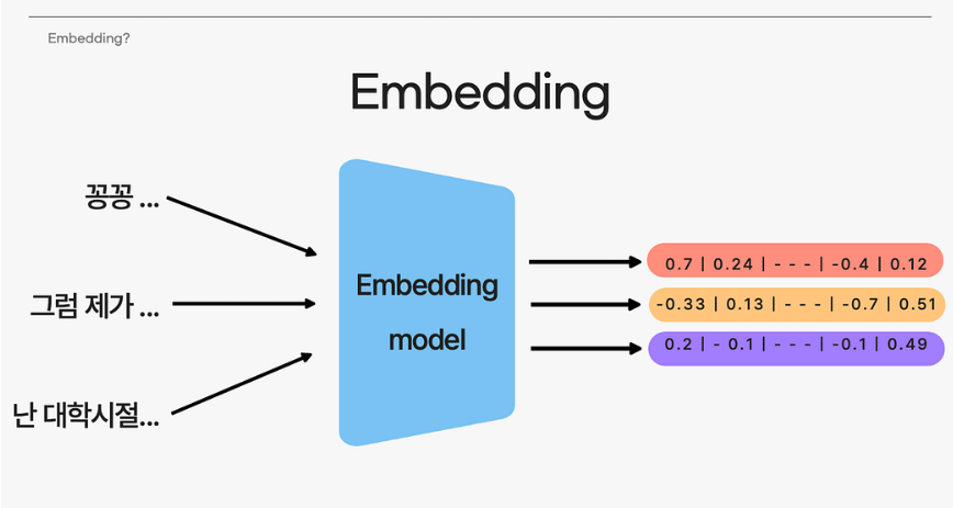 임베딩이란, 원본 데이터의 의미적 특성을 보존한 채 텍스트(단어, 문장, 문서 등)를 숫자 벡터로 표현하는 과정이다.
