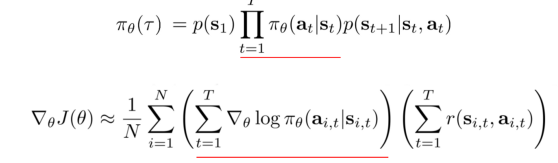 REINFORCE의 목적 함수는 궤적 전체에 대한 이득의 기댓값