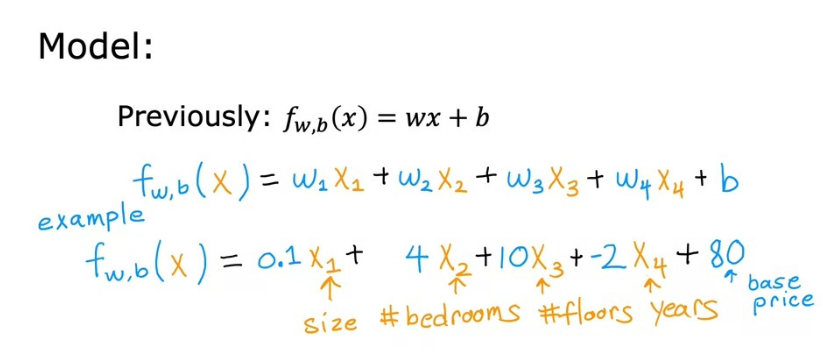 예를 들어 아래의 사진과 같이 집의 사이즈, 침실 수, 층수, 집의 연식 등을 종합적으로 고려해서 결과값(가격)을 도출해낸다는 것이죠.