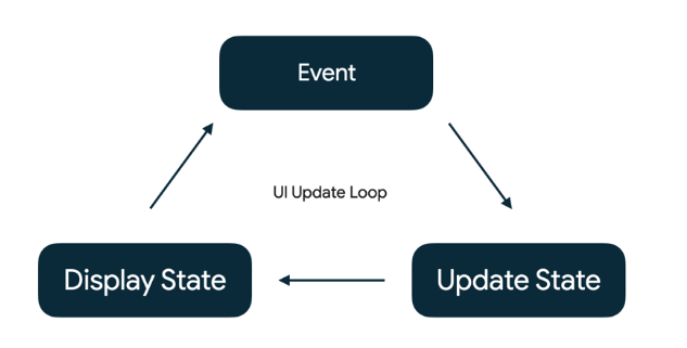 상태 표시(Display State): 새로운 상태를 표시하도록 UI를 업데이트