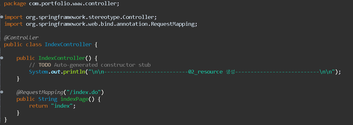 3. [해당 프로젝트] → [src/main/java] → [com.portfolio.www.controller] 패키지 생성 → [IndexController] java 파일 생성
