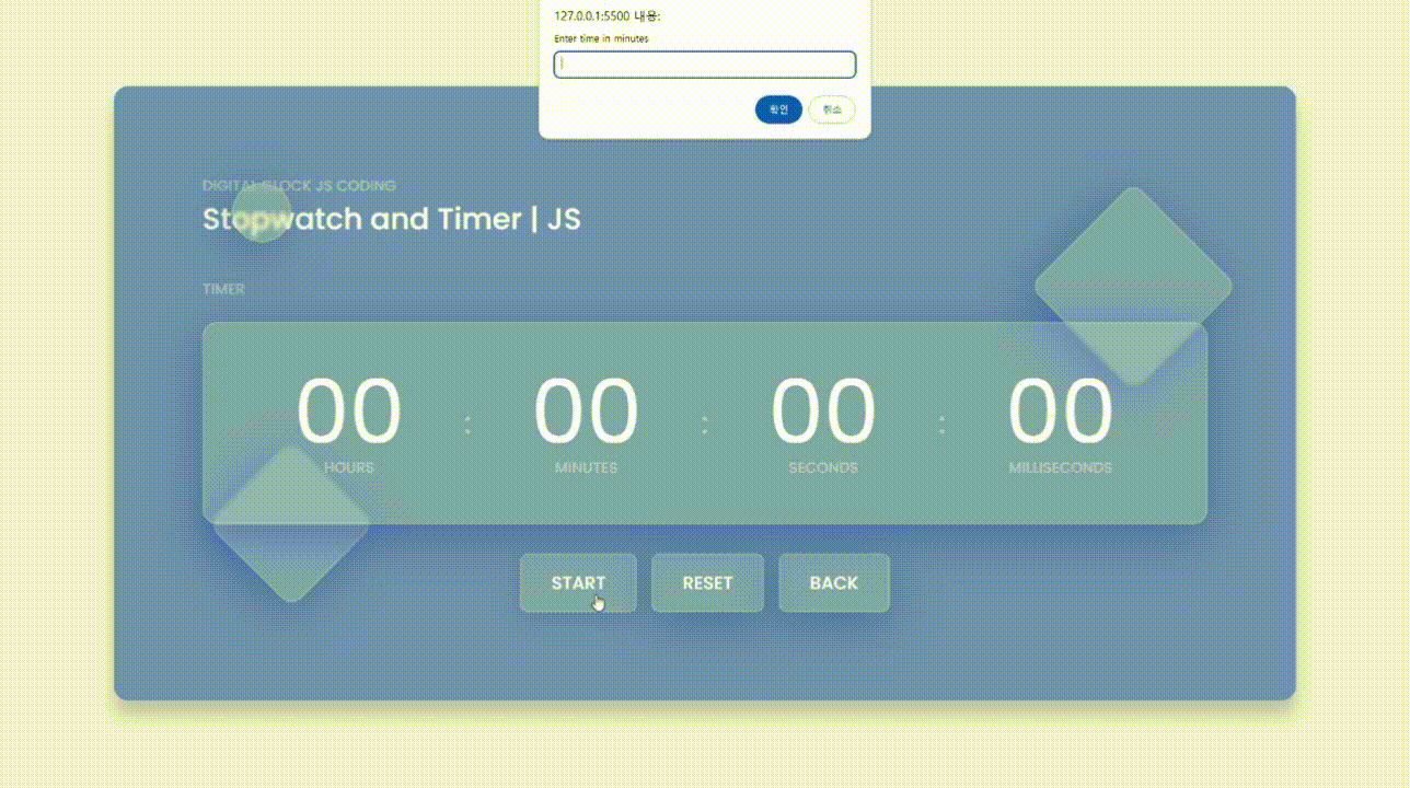 - Reset 버튼 클릭 : 타이머가 00:00:00으로 초기화됩니다.