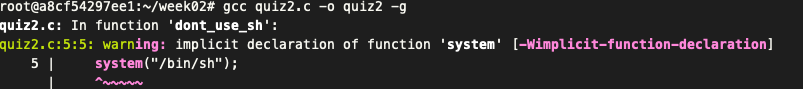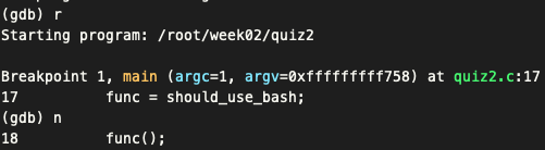 위 코드는 func에 should_use_bash를 할당한 후 실행시켜 /bin/bash 라는 명령어를 실행시키는 코드이다. (system()이 명령어를 실행하는 역할을 한다.)