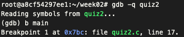 gdb실행 후 main에 중단점을 걸었다.