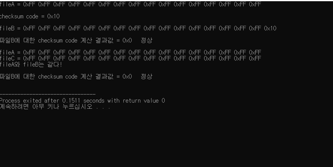 4.fileB 배열에 대해 다시 한 번 체크섬을 계산하고, 계산 결과를 출력