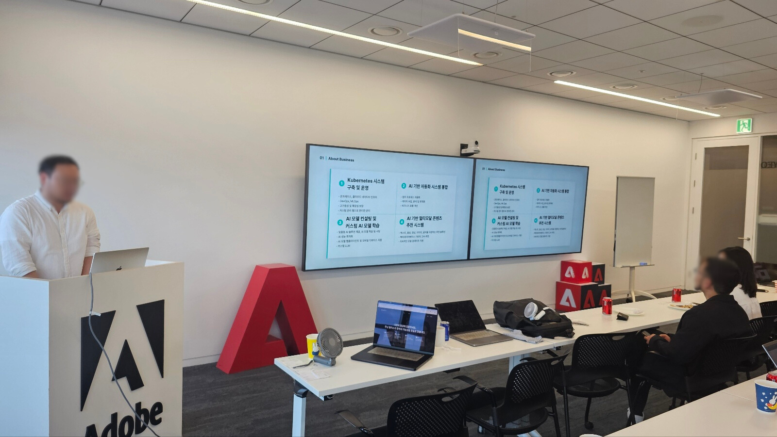 행사가 열린 어도비 코리아 오피스는 들어서는 순간부터 긍정적인 에너지로 가득했습니다. 딱딱한 비즈니스 미팅이 아닌, 마치 잘 아는 동료들을 만나는 듯한 편안하고 활기찬 분위기였죠. 행사를 주최한 어도비 코리아에서 손수 준비해주신 피자와 시원한 음료는 기술 기업 대표님들과 개발자들의 어색함을 녹이는 최고의 아이스브레이커였습니다.