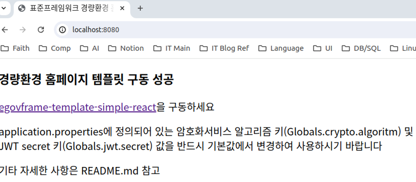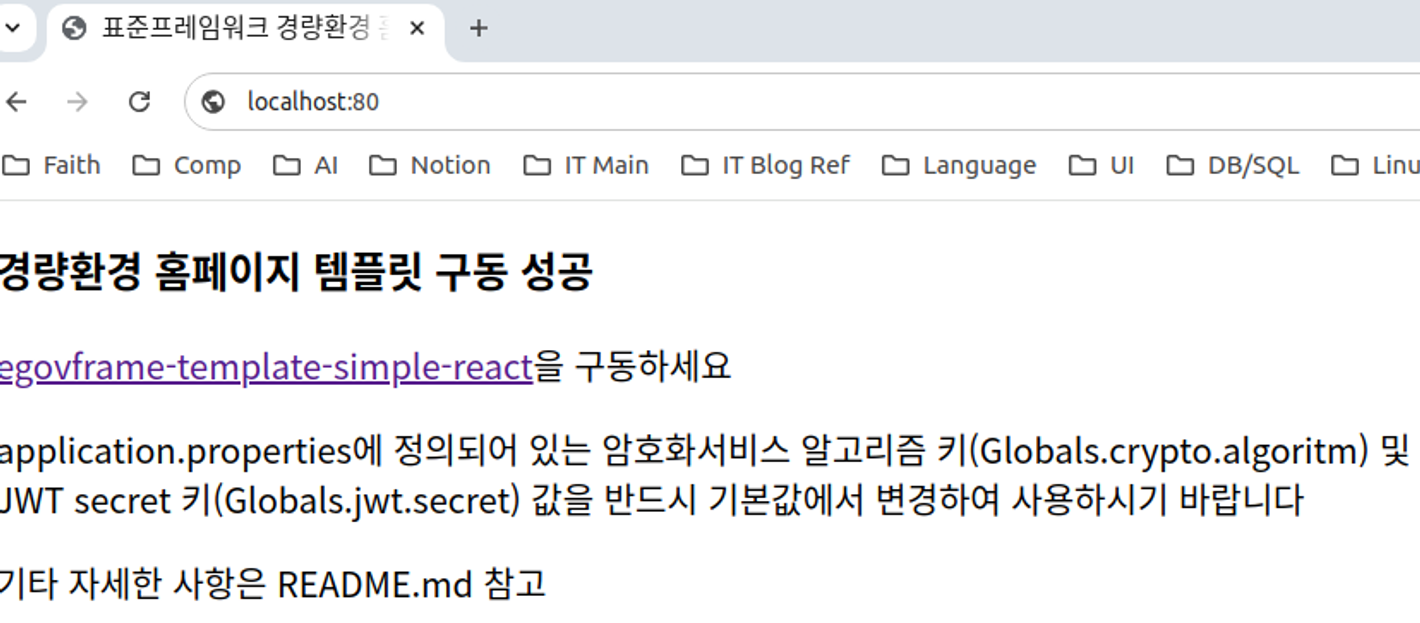웹 브라우저를 열고 http://domain-name:portNubmer(예:http://localhost:82)으로 접속하여 Spring Boot 애플리케이션이 정상적으로 동작하는지 확인합니다.