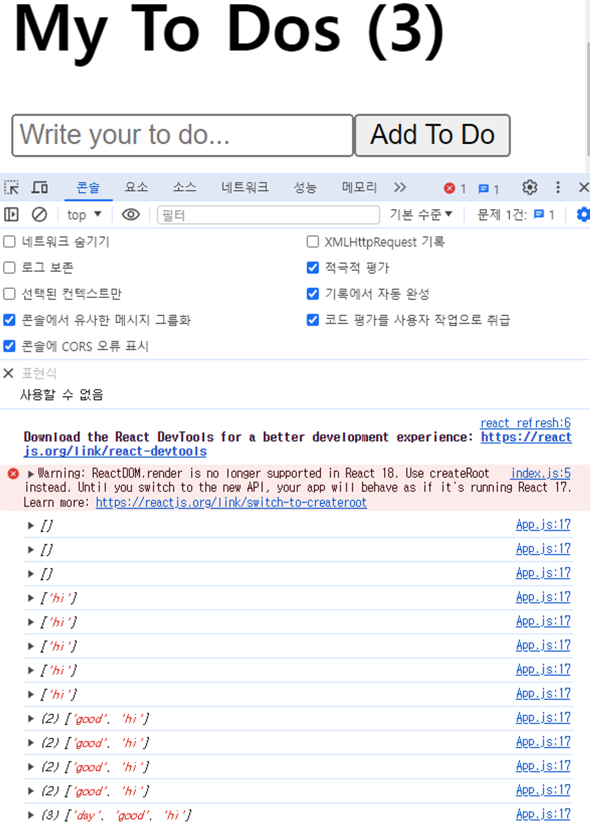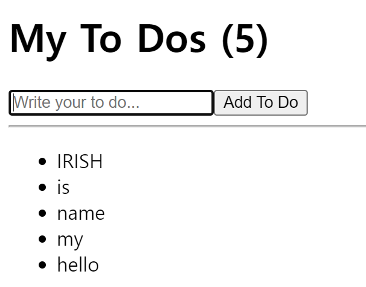 // toDo, toDos나 직접적으로 수정 불가능 >>> 함수를 가져와서 수정하게 만들어야함(setToDo, setToDos)
