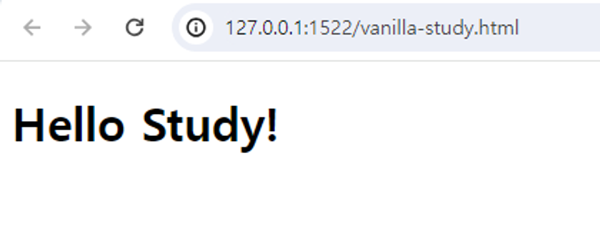 <!DOCTYPE html> <html> <body> <h1>Hello Study!</h1> </body> <script></script> </html>