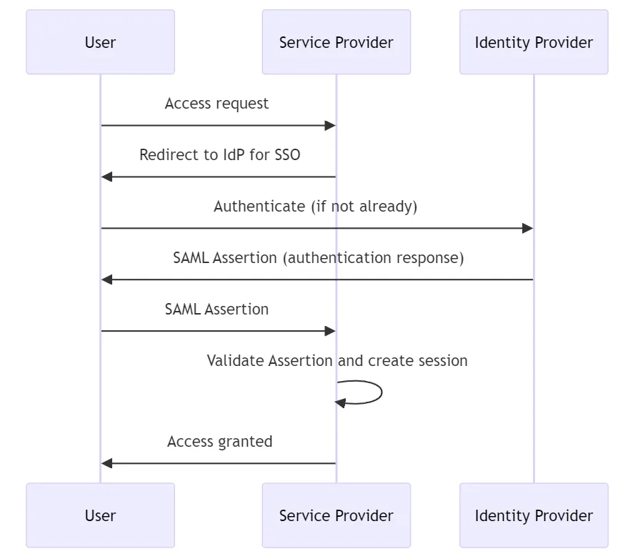 - 그런 다음 서비스 공급자는 이 어설션을 기반으로 액세스 권한을 부여한다.