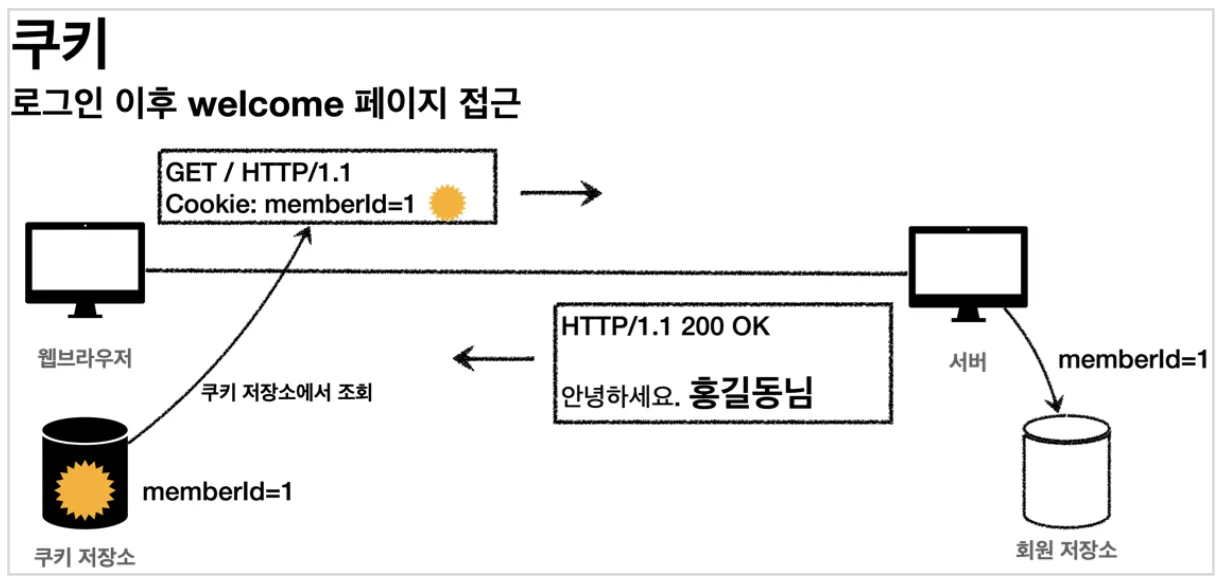 memberId)를 담아 클라이언트에 전달한다.memberId 쿠키를 저장한다.→ 로그인 상태