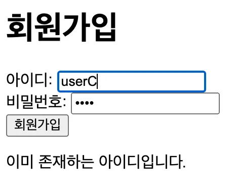 model.addAttribute("error", "이미 존재하는 아이디입니다.");