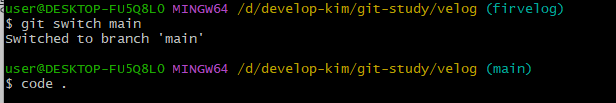 git switch -c 브랜치이름 은 내가 지정한 브랜치 이름으로 생성을 하면서 바로 브랜치로 이동하라는 명령어다 만약 생성만 하고 싶다면 git branch 브랜치이름을 쓰면 된다