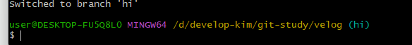또한 hi브랜치로 이동을 하고 싶으면 git switch hi 를 작성하면