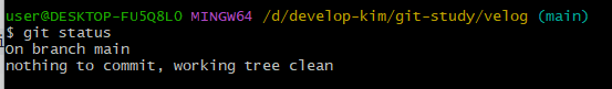 이동할 수 있다 여기서 브랜치만 생성하였고 파일을 수정 하지 않았으니 git commit을 할 필요는 없다 다만 불안하다면 git status를 습관화 하자.