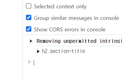 $h2라는 변수에 문서안에 section-title이라는 클래스를 가진 객체들을 모두 저장한다는 뜻이다. 그리고 $h2의 로그를 보면