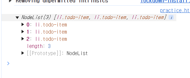 document.querySelectorAll('.클래스이름')을 지정해주면 다 나타나는 것을 알 수 있다.