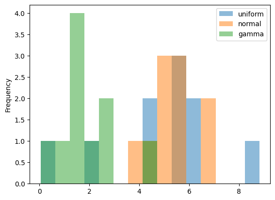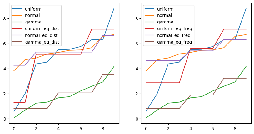 uniform normal gamma uniform_eq_freq normal_eq_freq gamma_eq_freq