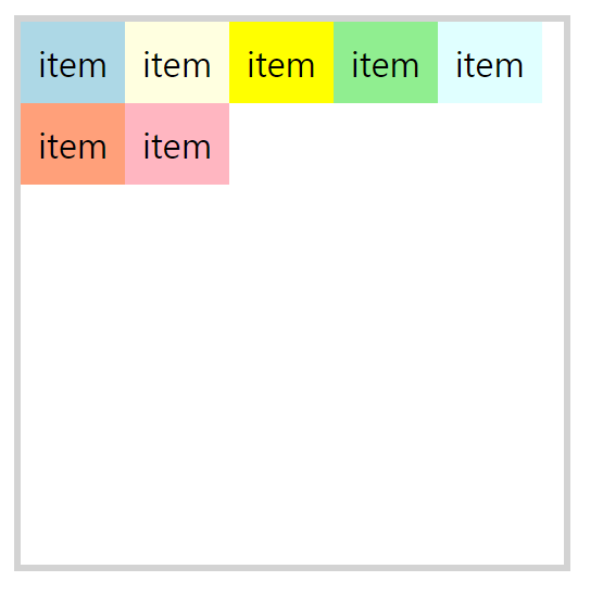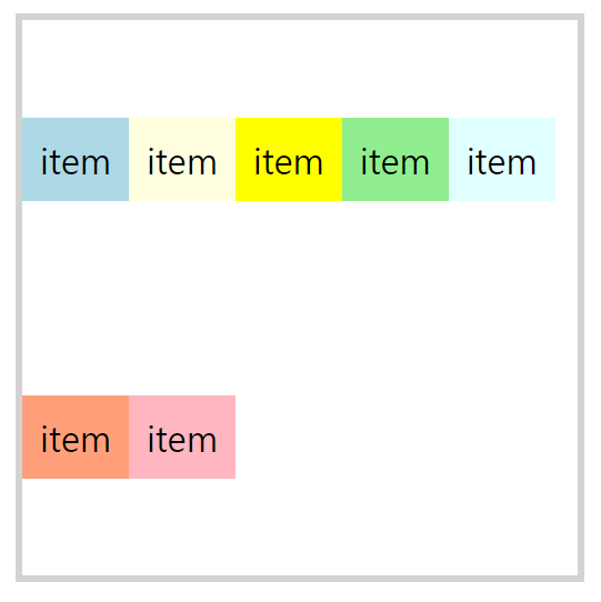 wrap: 위에서 아래로 여러 줄로 줄 바꿈