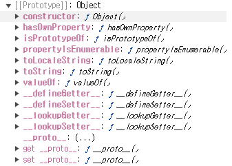 user 객체를 브라우저 개발자 도구로 들어가서 확인하면 객체 안에 prototype이라 정의된 객체가 있는 것을 볼 수 있다.