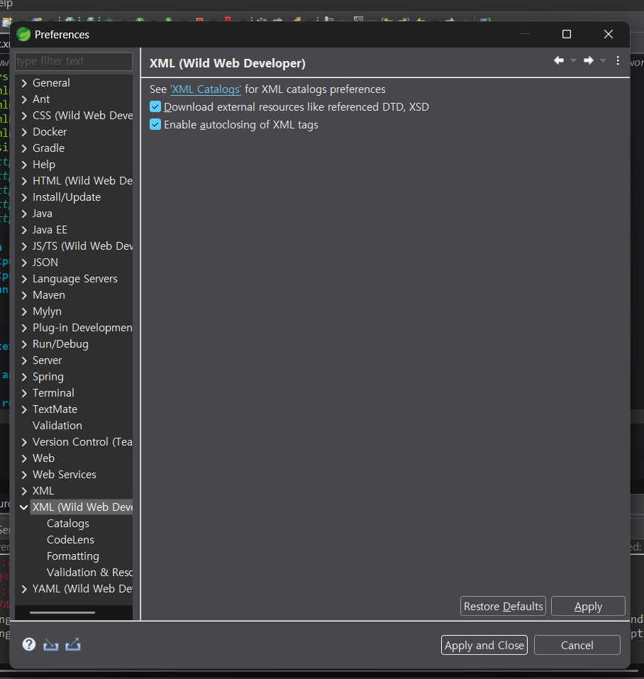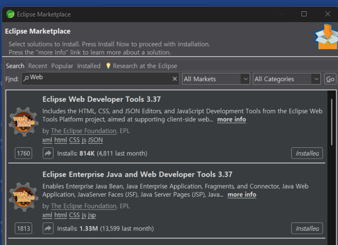 help - eclips Marketplace 에서 Web 검색 후 아래 두개 다 install