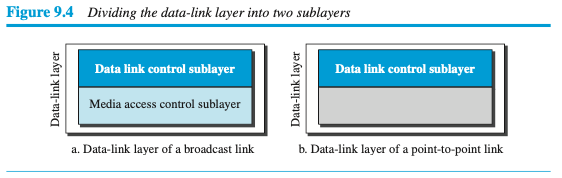 데이터 링크층은 전송 매체의 모든 성능을 사용하는 점-대-점(point-to-point)링크가 있고, 링크 성능의 일부를 사용하는 브로드캐스트(broadcast)링크가 있다.