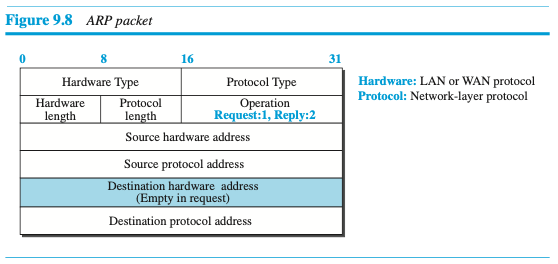 호스트 또는 라우터는 네트워크에서 다른 호스트 또는 라우터의 링크 계층 주소를 찾기 위해 ARP 요청 패킷을 전송한다. 패킷은 전송자의 링크 계층과 IP주소와 수신자의 IP주소를 포함한다.