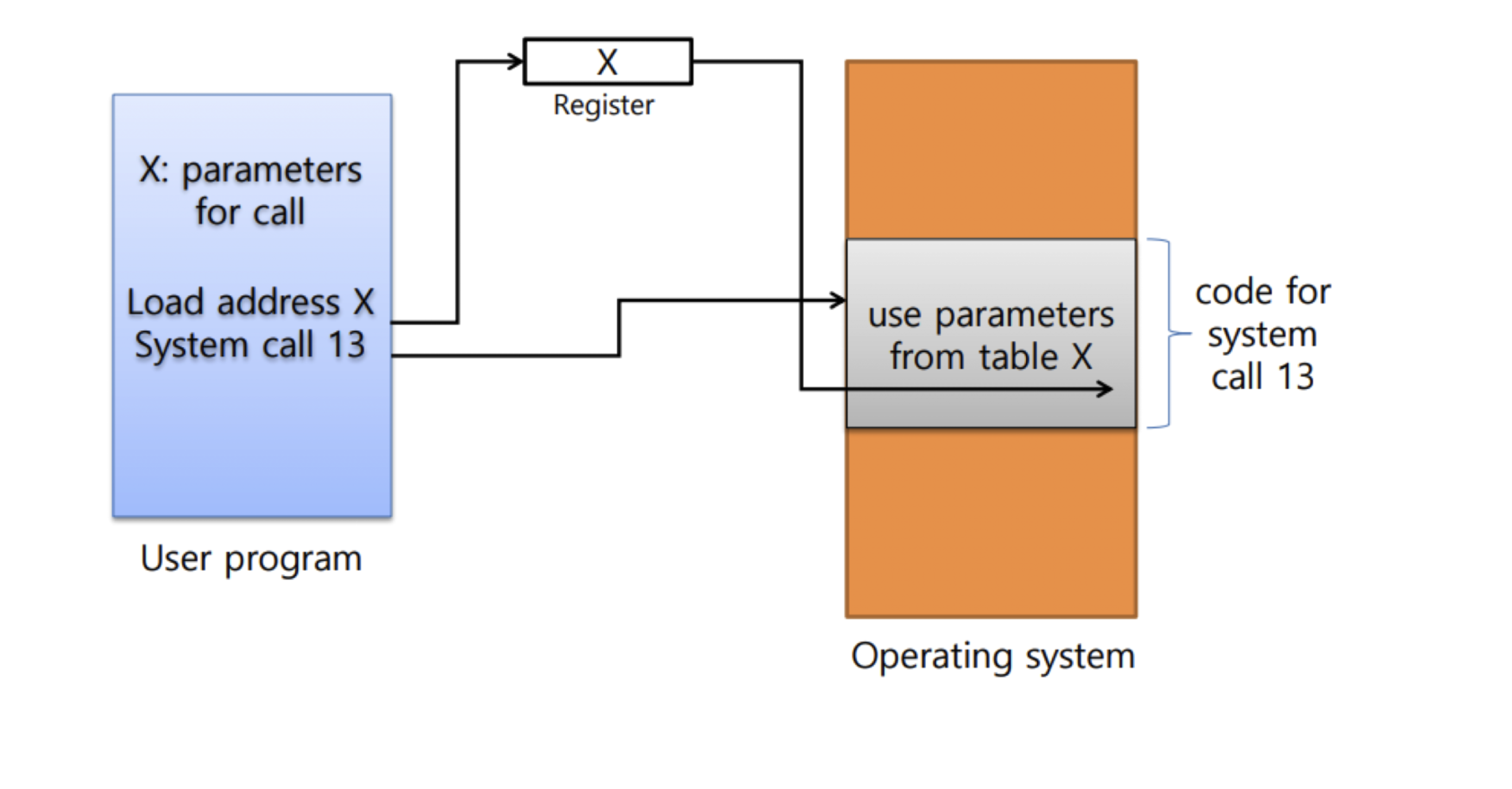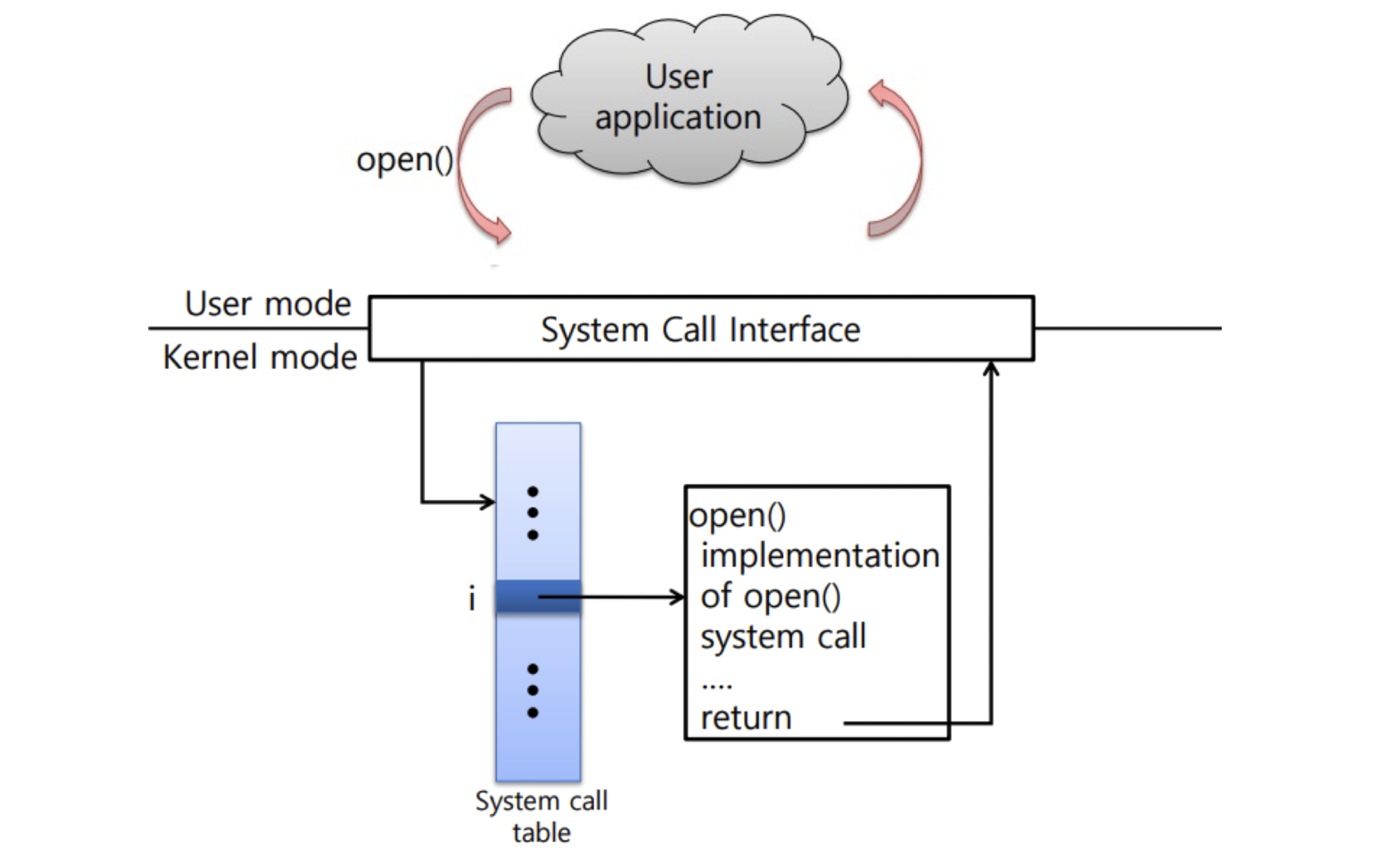 애플리케이션은 자신의 주소 공간에 커널 코드 영역을 매핑하여 커널 서비스를 이용