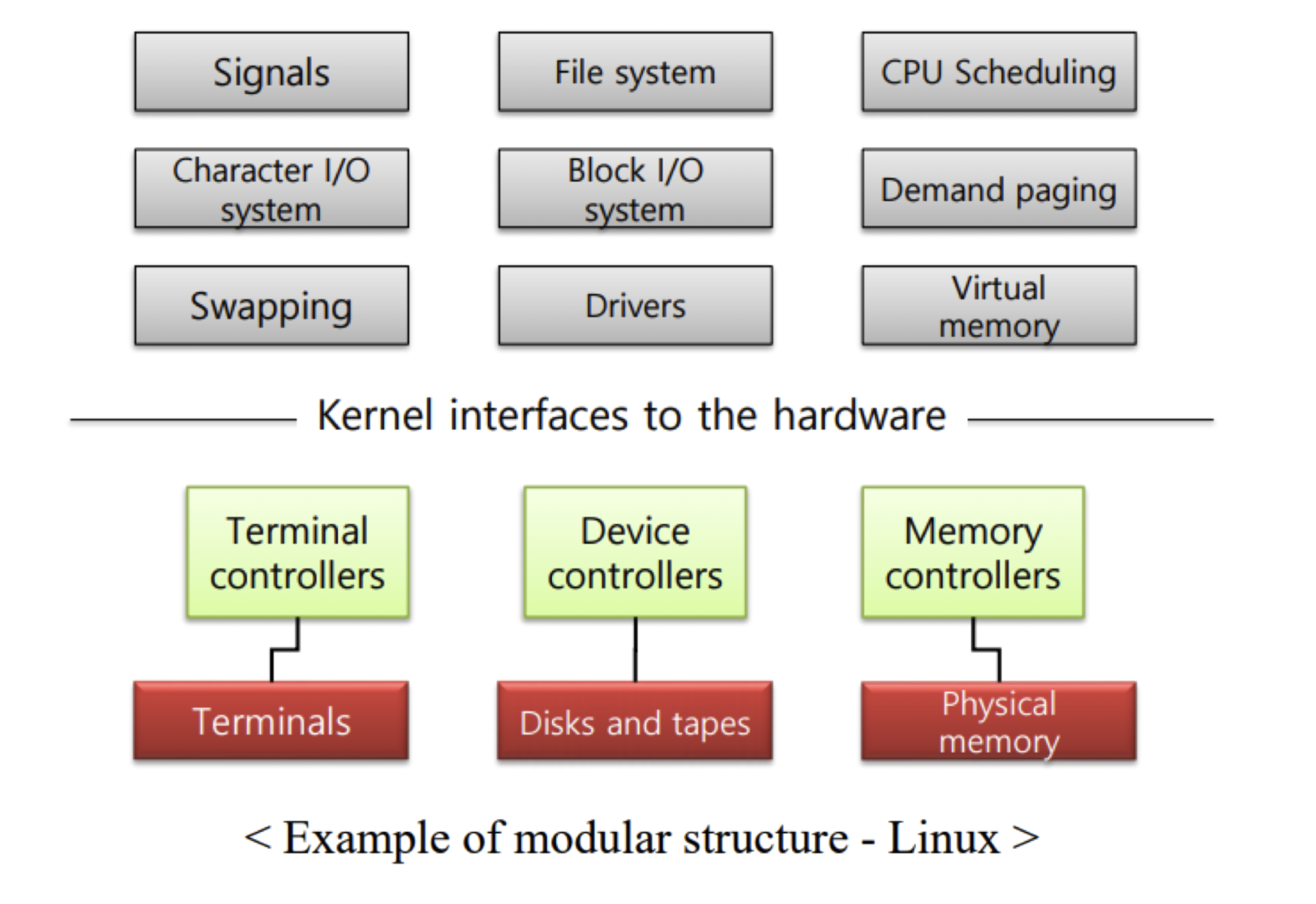 Linux의 모듈러 구조이다.