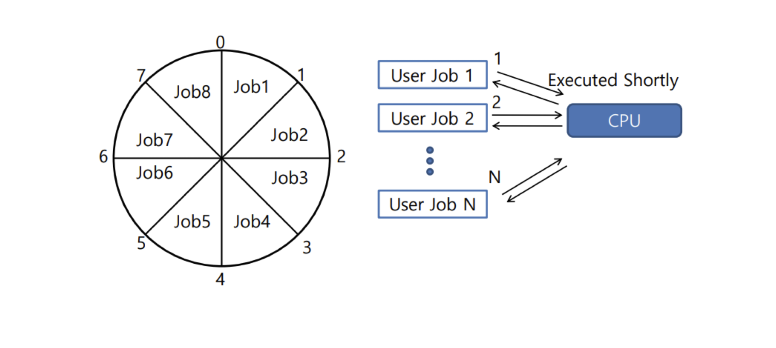 - Job들은 메모리와 디스크로 Swap In/Out될 수 있음