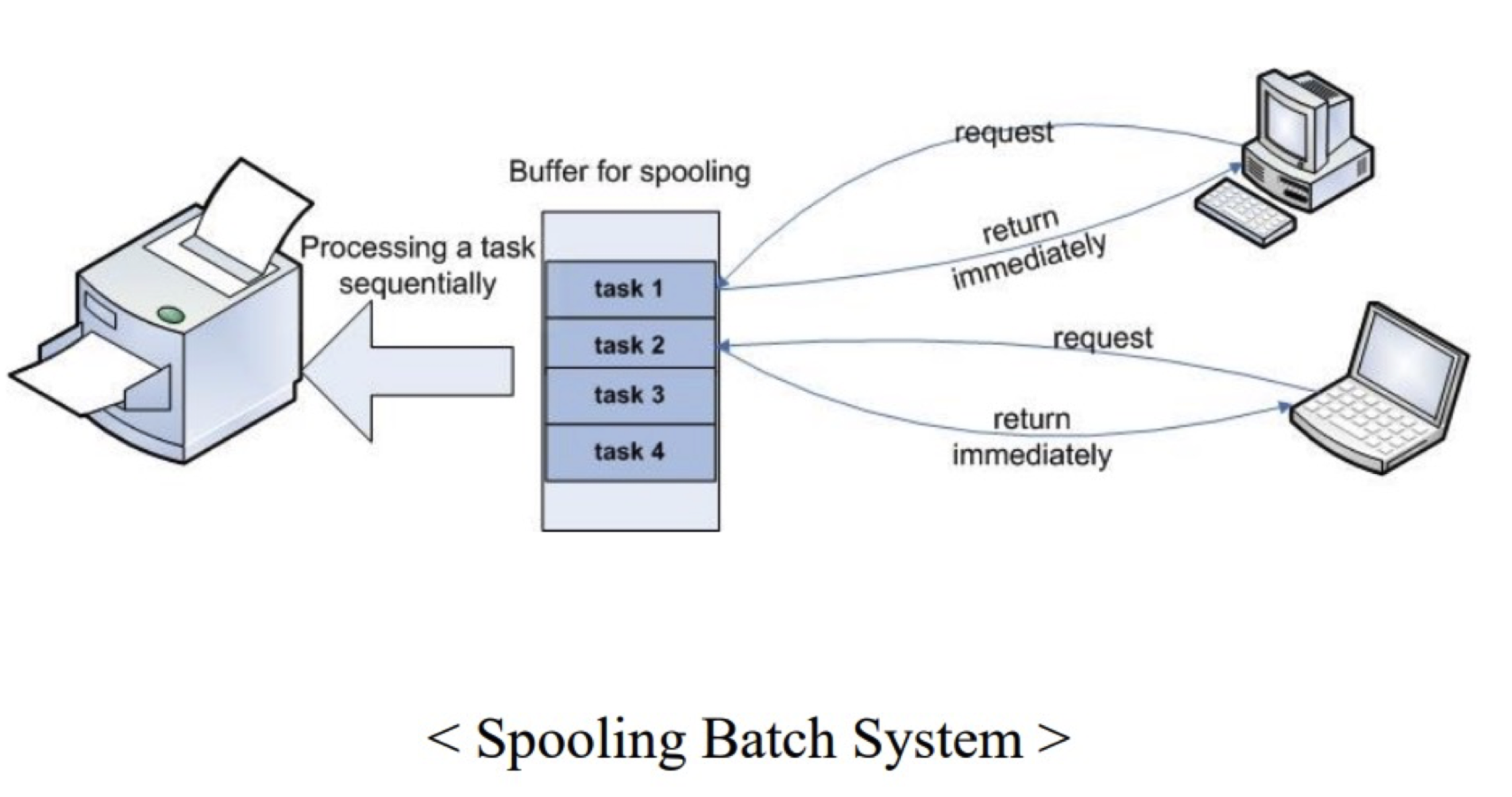 Spooling을 통해 사용자는 여러 개의 인쇄 작업을 프린터에 순차적으로 요청할 수 있음