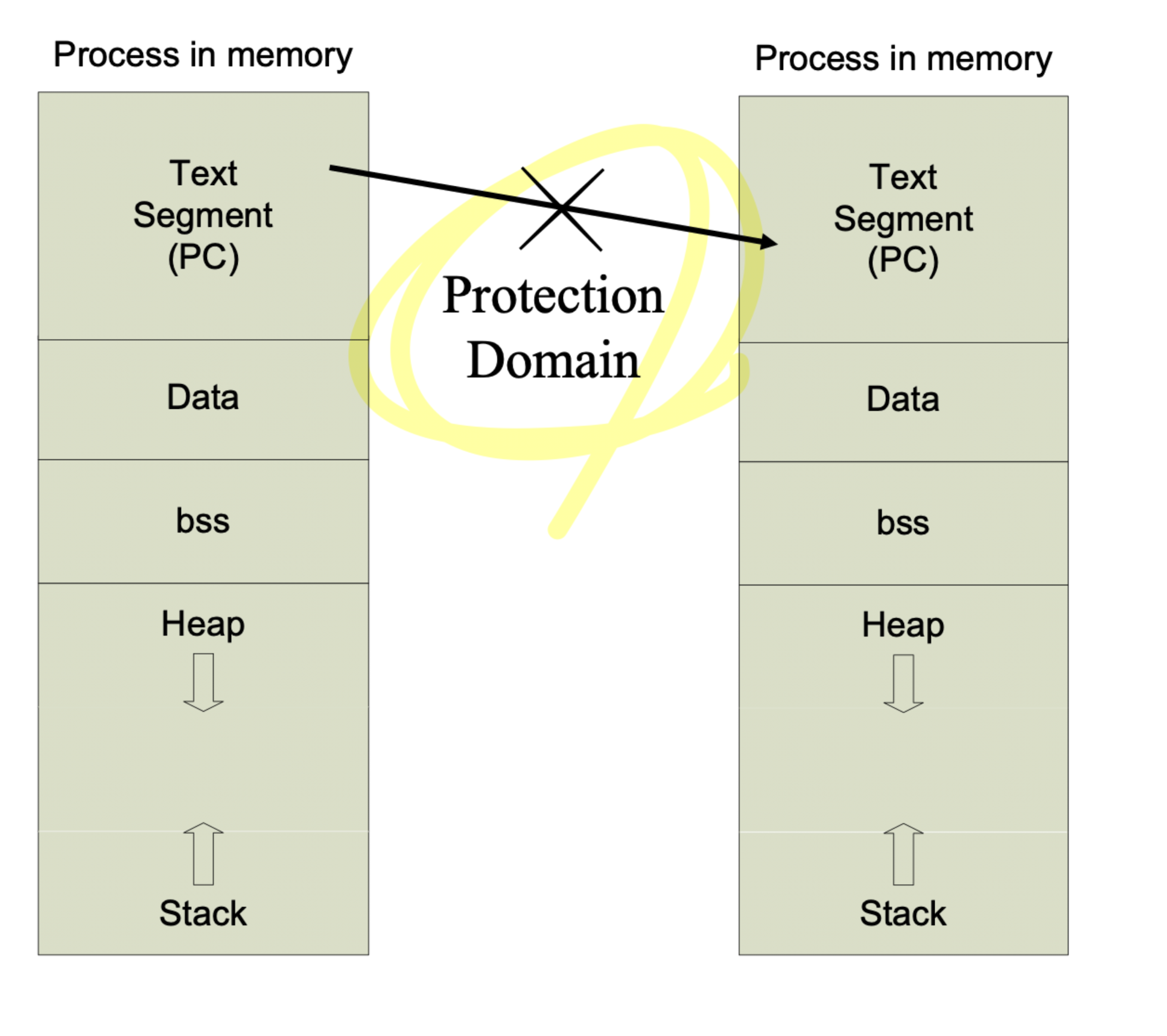 서로 다른 프로세스들간에는 침범하지 못한다. (Protection Domain)