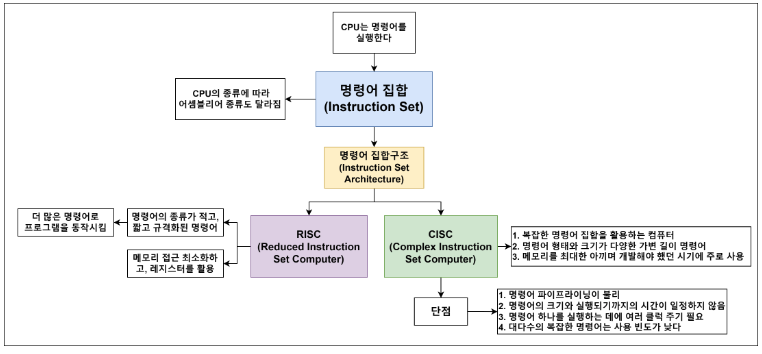 간단한 명령어 셋 구성 -> 클럭 속도 높임 -> 빠른 수행 속도