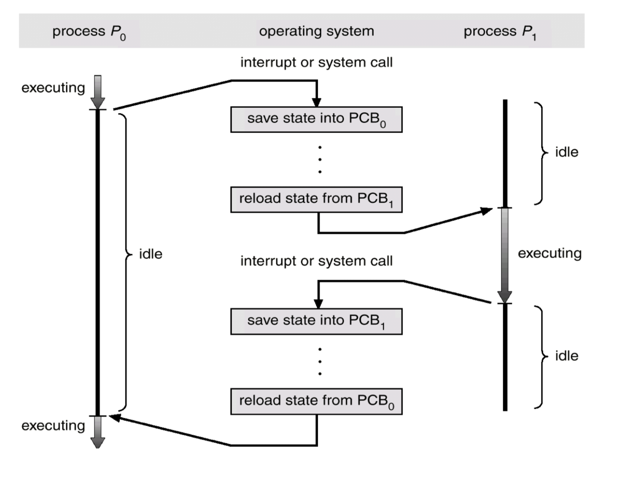 When CPU switches to a new process, kernel must save the state of the old(current) process(기존 프로세스 상태 저장) and load the saved state for the new process(새로운 프로세스 로드).