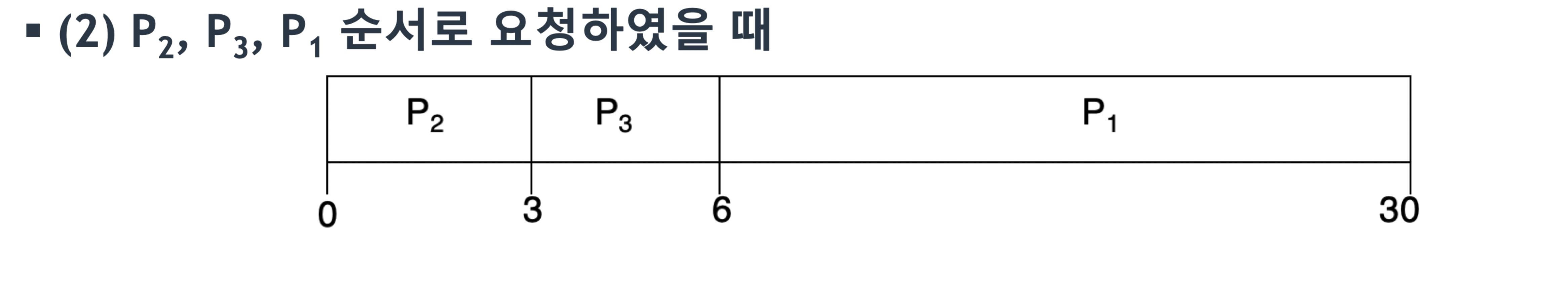 결론 : FCFS는 작업의 수행 순서에 따라 대기 시간이 변할 수 있다.