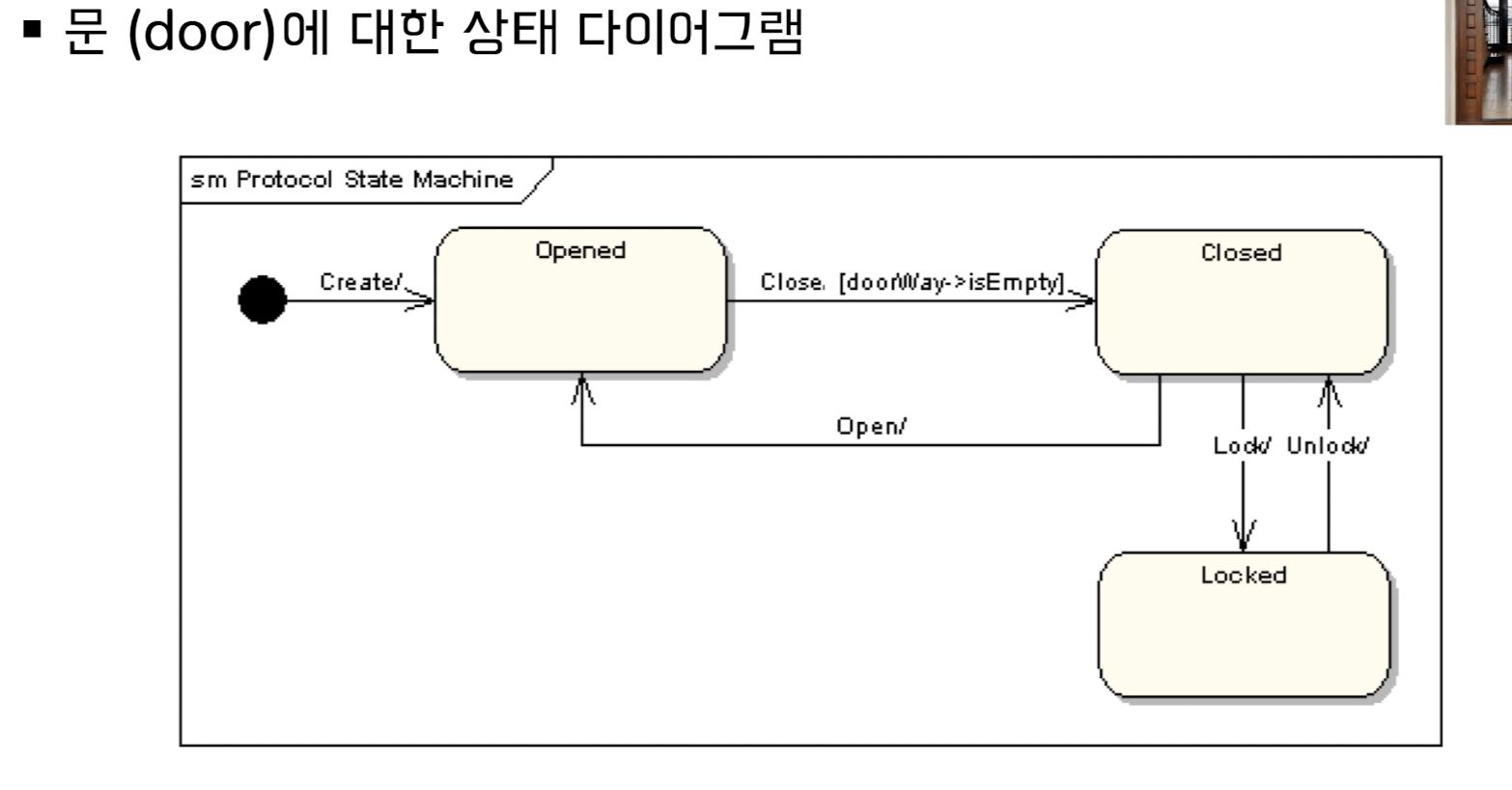 시스템이나 객체의 상태가 어떤 오퍼레이션에 의해 어떻게 동적으로 변하는지를 표현한 것