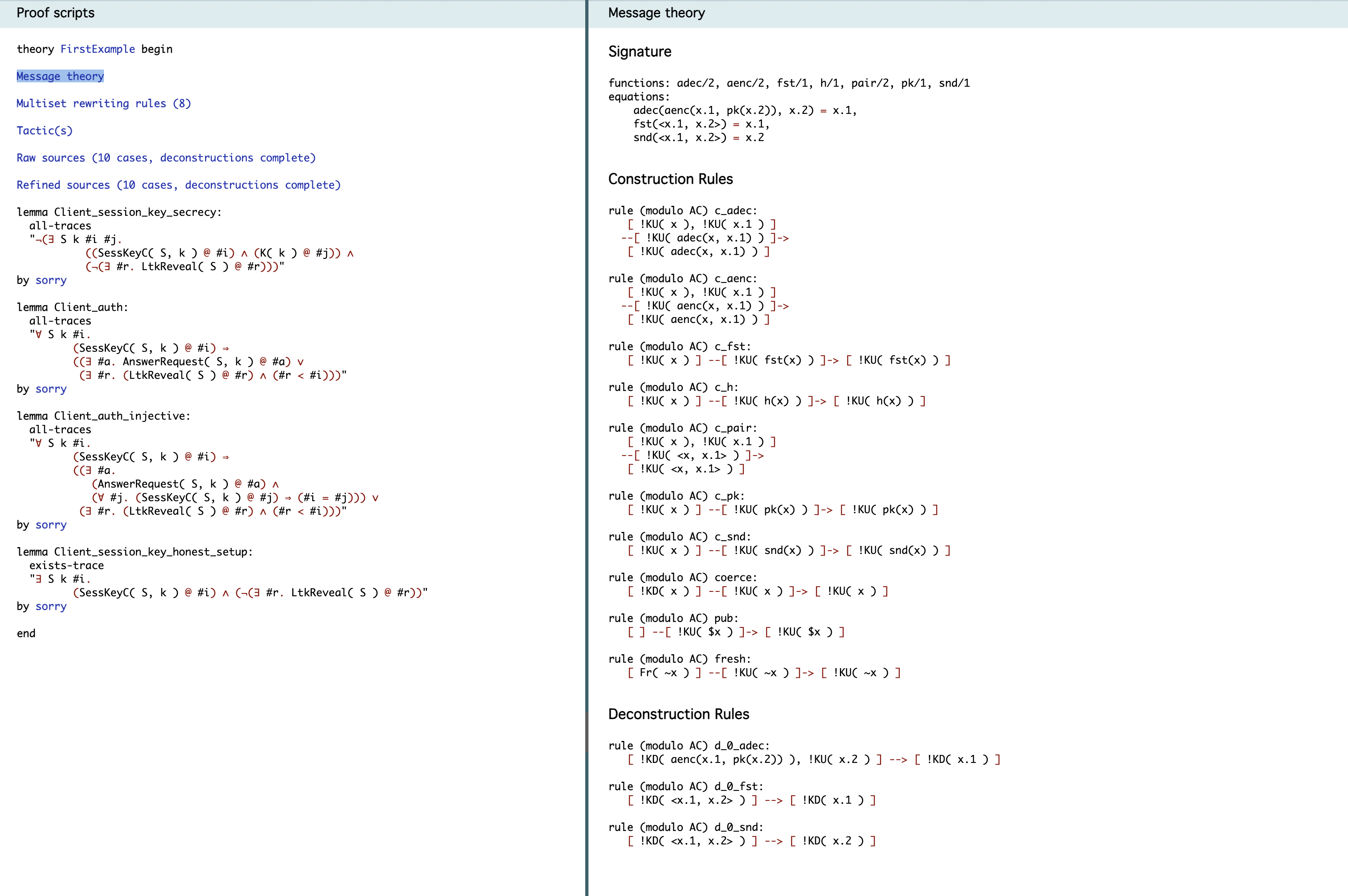 $ tamarin-prover interactive FirstExample.spthy