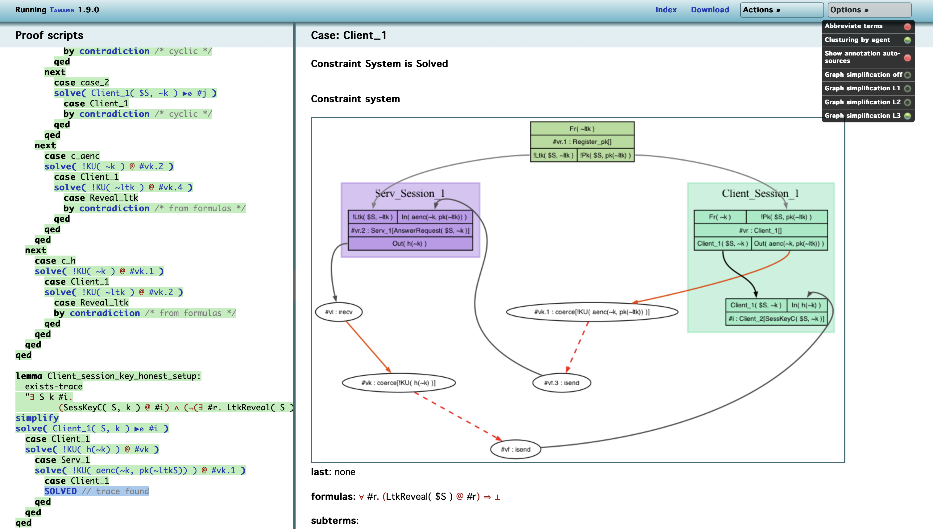 그러나 이후 보안 속성(security property)에서 session key에 대한 주장을 제시해야 한다. 따라서, 계산된 key를 action에 추가한다.