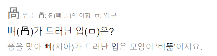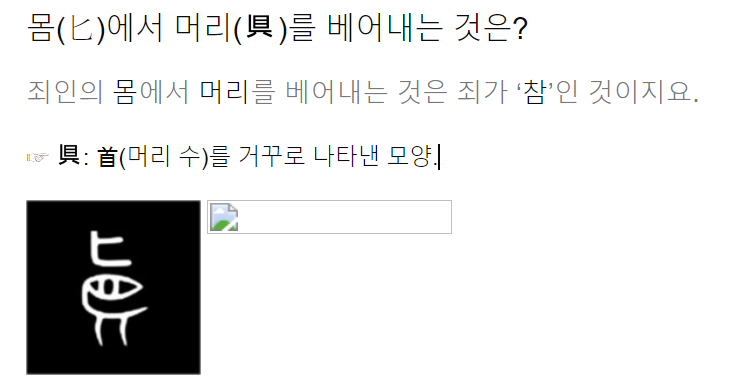 예시 : 험함(險함: 땅의 형세가 사납고 가파름), 험악(險惡), 위험(危險)