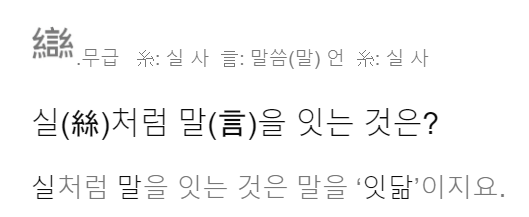 예시 : 종료(終了: 일을 마침), 종결(終結), 최종(最終)