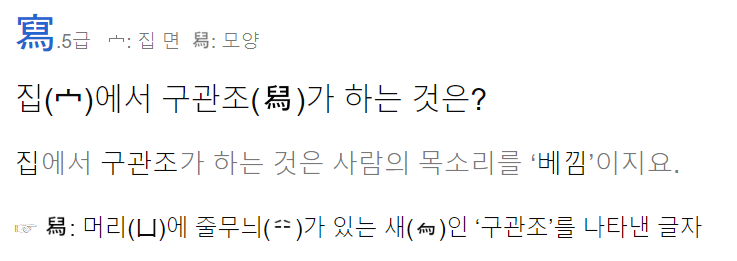 예시 : 모사(模寫: 본떠 베낌), 복사(複寫), 사진(寫眞)