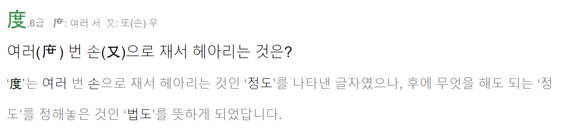 예시 : 법도(法度: 법률과 제도를 아울러 이르는 말), 정도(程度), 한도(限度)