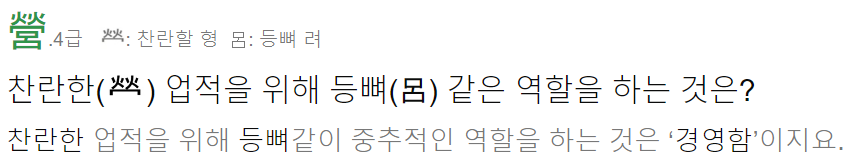 예시 : 성공(成功: 공을 이룸), 성사(成事), 달성(達成)