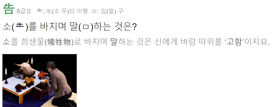 예시 : 연고(緣故: 일의 까닭/ 맺어진 관계/ 인연), 고향(故鄕), 고인(故人)
