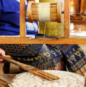 날실들 사이로 창 같은 북을 사람이 넣는 기계인 베틀을 쓰면 일이 ‘몇’ 배는 빨라지지요.