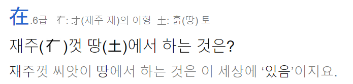 예시 : 재능(才能: 재주와 능력), 재질(才質), 수재(秀才)