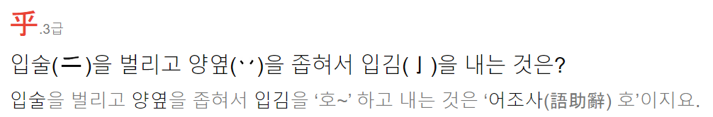 예시 : 호(乎: 의문형 또는 감탄형 종결사, 처소격, 비교격 등으로 쓰이는 어조사)