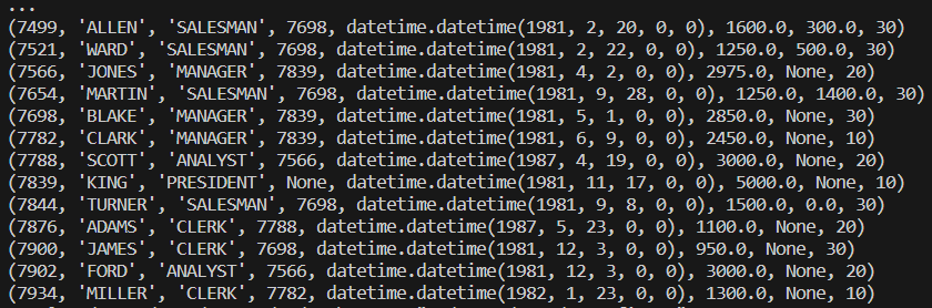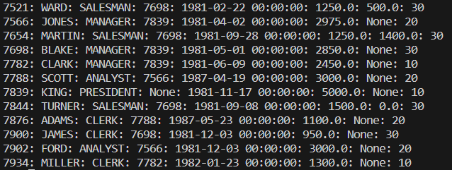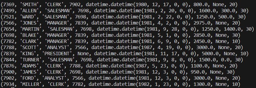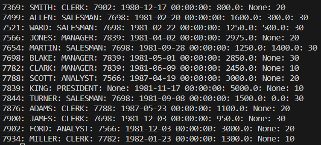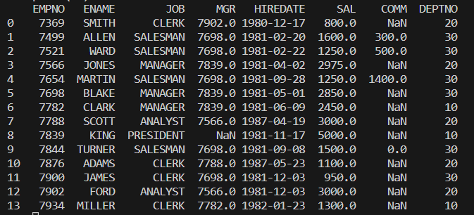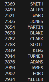sql = "SELECT EMPNO, ENAME FROM EMP"